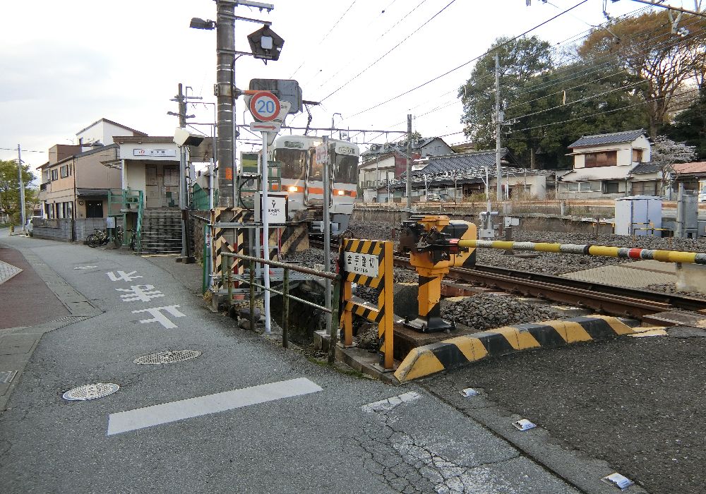 「アラッ、遮断機」。JR中央線では珍しいのでは?