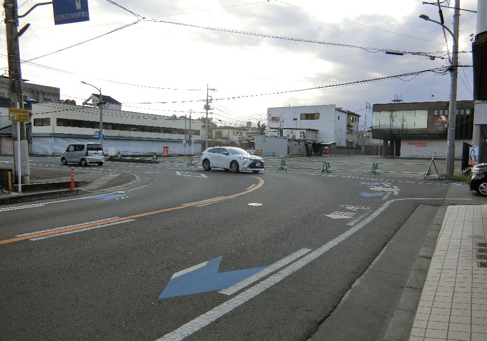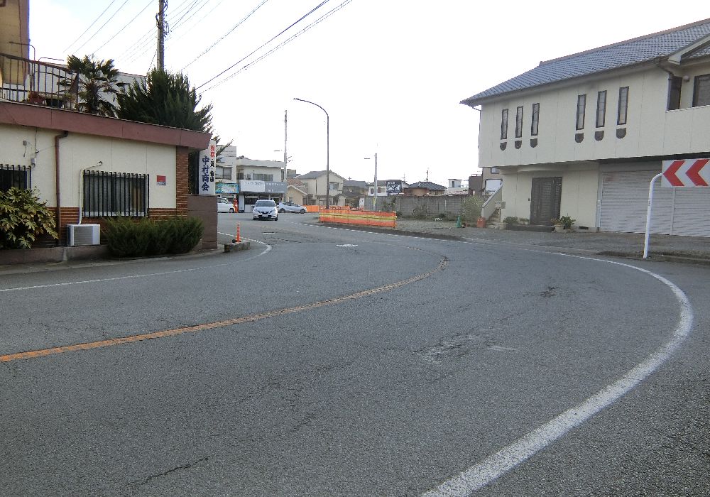 善光寺駅入り口で道路は直角に左折し、すぐに右に曲がる、いわゆる金手。甲府市内の甲州街道はこの金手がいくつかある。