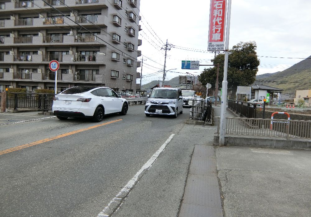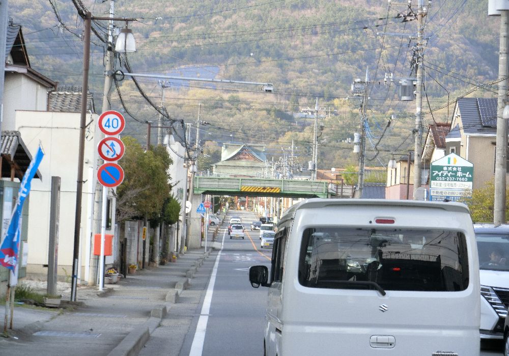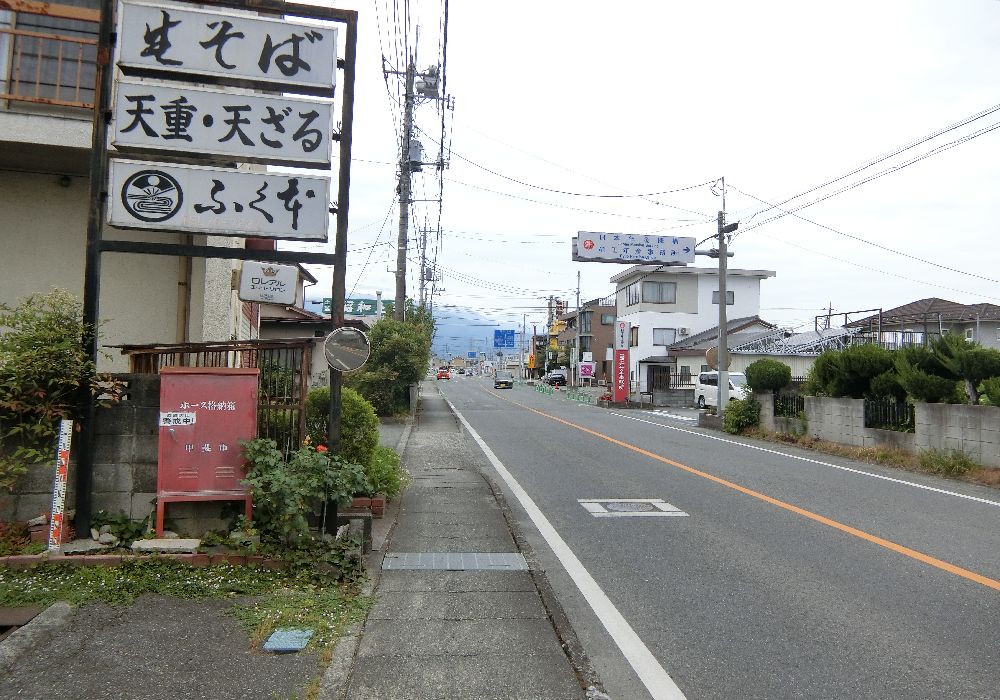 甲府市内に入ったが道路には歩道がない。国道20号はバイパスができたからこちらは車が少なくなったということか。