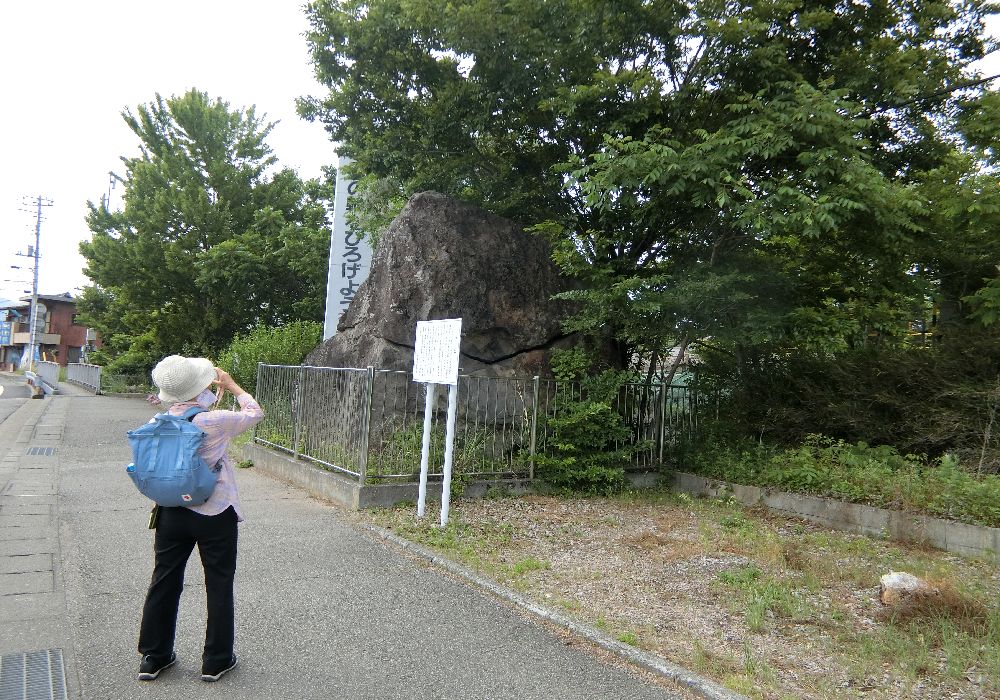 JR線路に沿った道を進むと「泣き石」