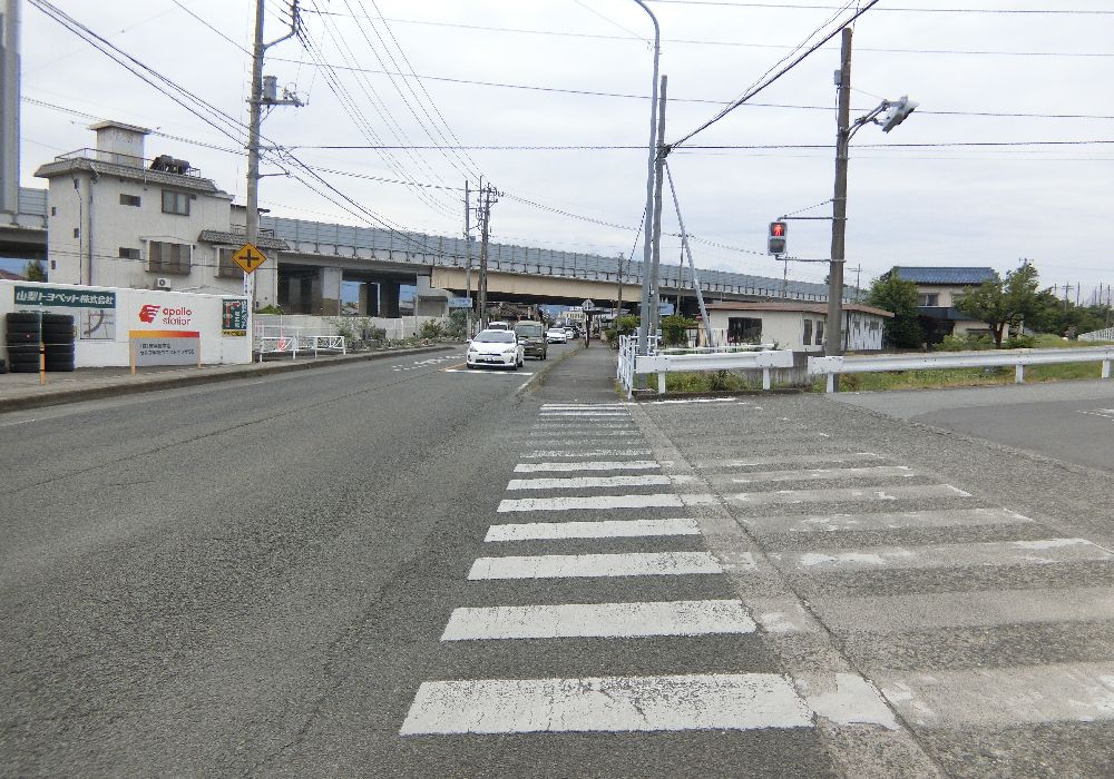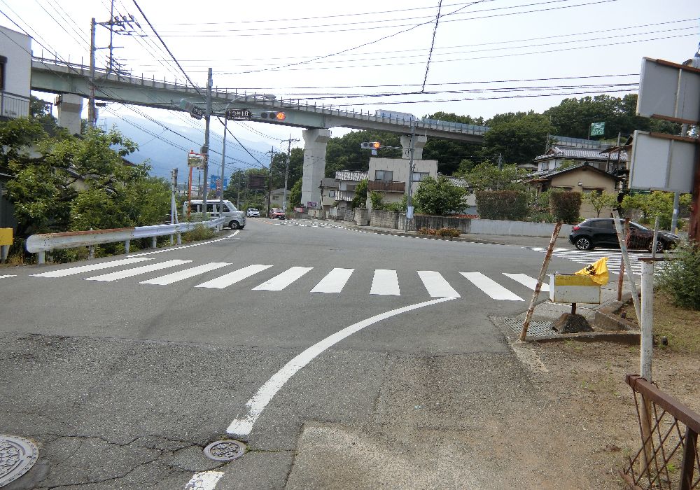 おおなかを満たして気分よく歩くと、右手にある「竜王駅入口交差点」を過ぎ右手に向かう。