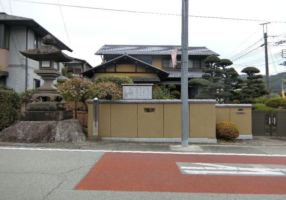 「本陣跡」の説明板がある家は今も立派な家が建っている。脇には秋葉神社の常夜灯もある。