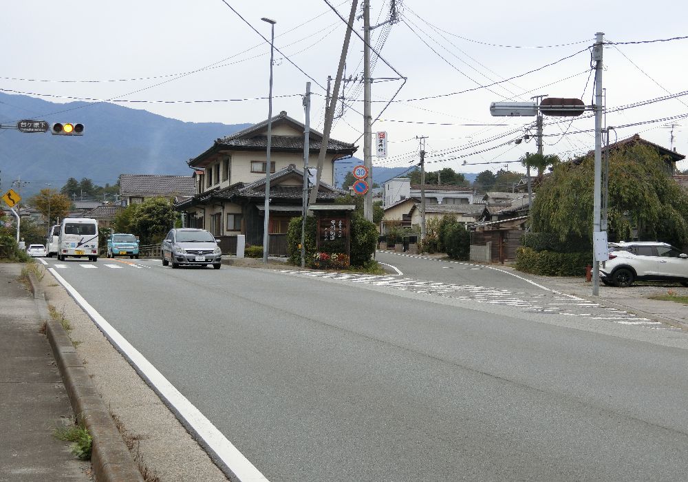 旅館の先でちょこっと国道を覗くがまた旧道に入る。立派な家が並んでいる。道幅はやや狭い。